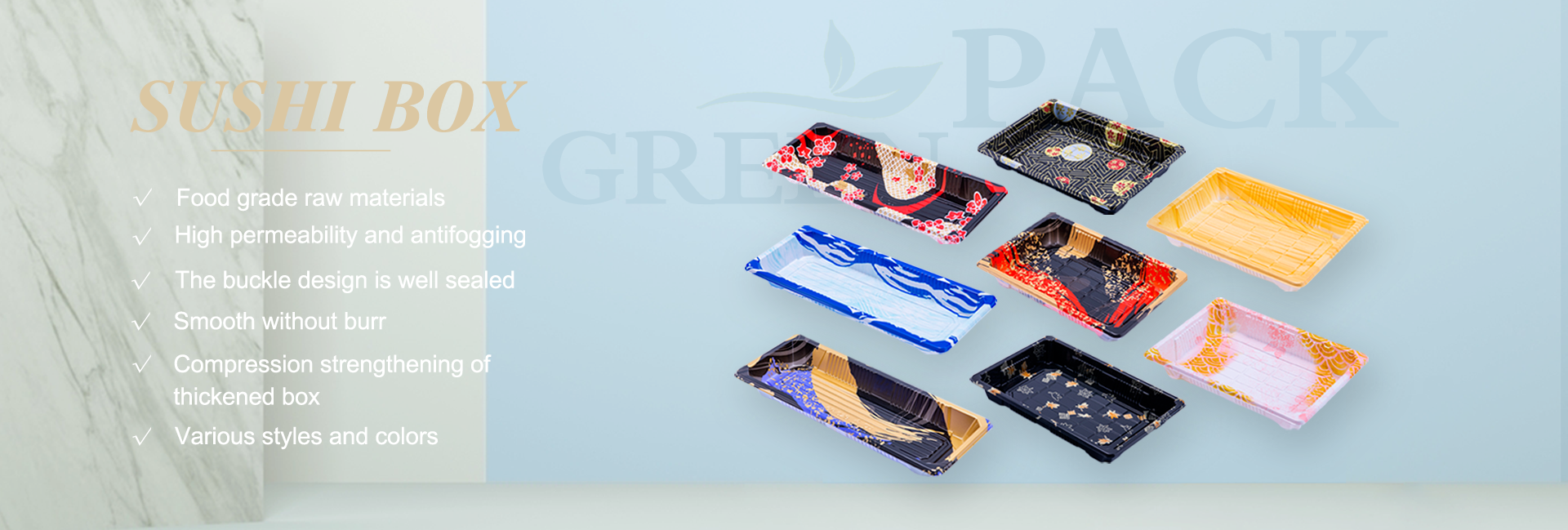 PET Sushi Tray with Transparent Antifog Lid for Restaurant Takeaway Packaging